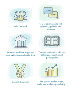 After polling hundreds of attendees of our recent webinars, we identified the most pressing topics requested by emerging fine art photographers. Based on this feedback, we've developed an intensive series of standalone webinars that dive deep into subject-specific material.
